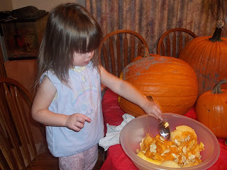 We carved pumpkins on Thursday night. Of course we had to let the kids color on them too :)