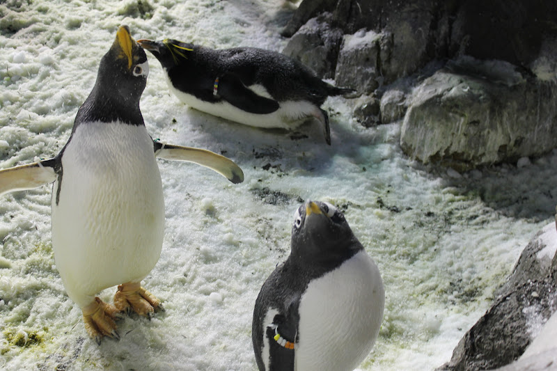Mom and Dad had decided not to go into the Penguin exhibit with us because mom was just worn out. We had planned on going the next day, but the kids insisted we go. It is a good thing they did. While we were inside looking at the penguins, dad was outside looking at the tropical penguins. He got to talking with one of the workers there, and the guy mentioned that they generally select 1 family a day to go inside the penguin exhibit. He told my dad that he would pic him, but they want him to pick someone with kids. My dad got all excited and told him that he had his 3 grandkids with him. Jason (the worker) got excited and told my dad to gather us up, so we could go inside the penguin exhibit.