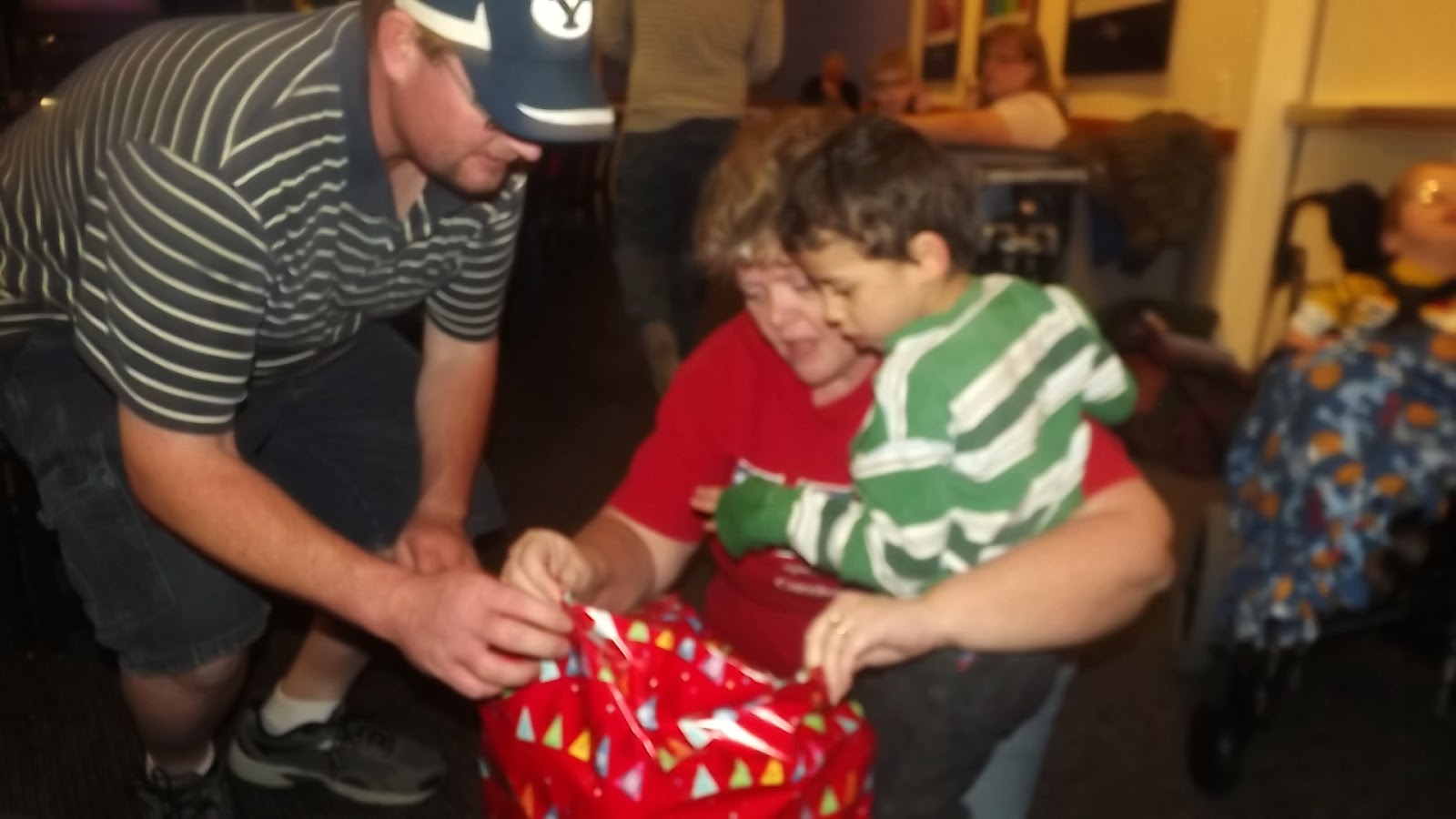 I swear he knew who each gift was from because after he opened each gift, he went right to the person who got it for him. Aunt Veronica always buys him soft things because he loves the feel of them.